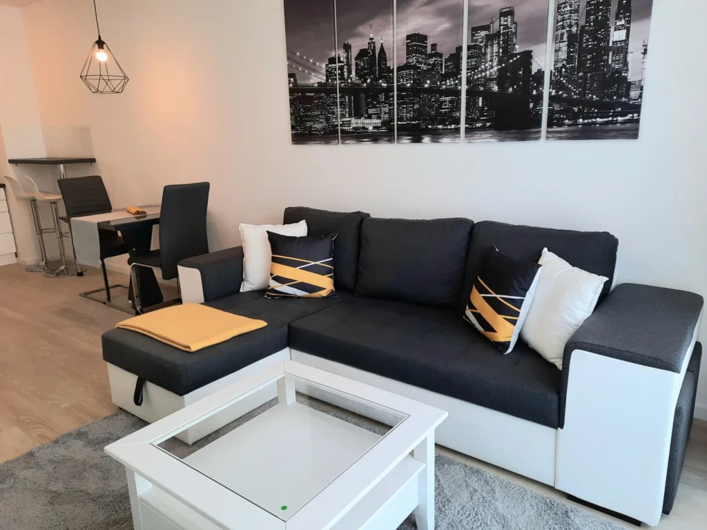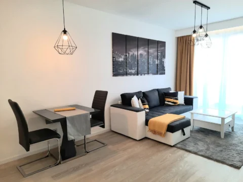 Newly Built One-bedroom apartment for rent on Corvin Promenade is available in the popular Garnd building, located in District 8 of Budapest. The apartment is situated on the 6th floor, and offers a panoramic view and comfortable living space in one of the city’s most dynamic residential areas.